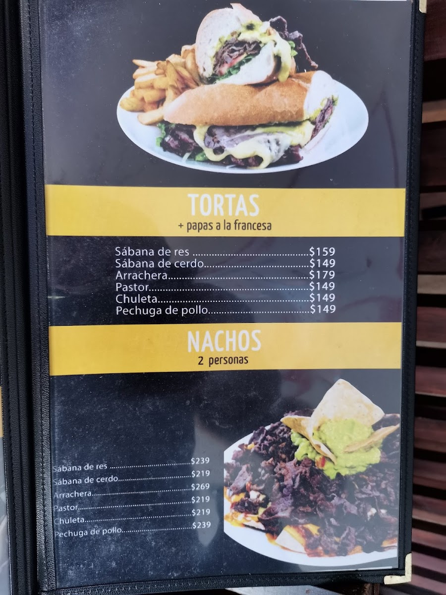 Torta con carne a elegir, queso, guacamole, lechuga, papas a la francesa.